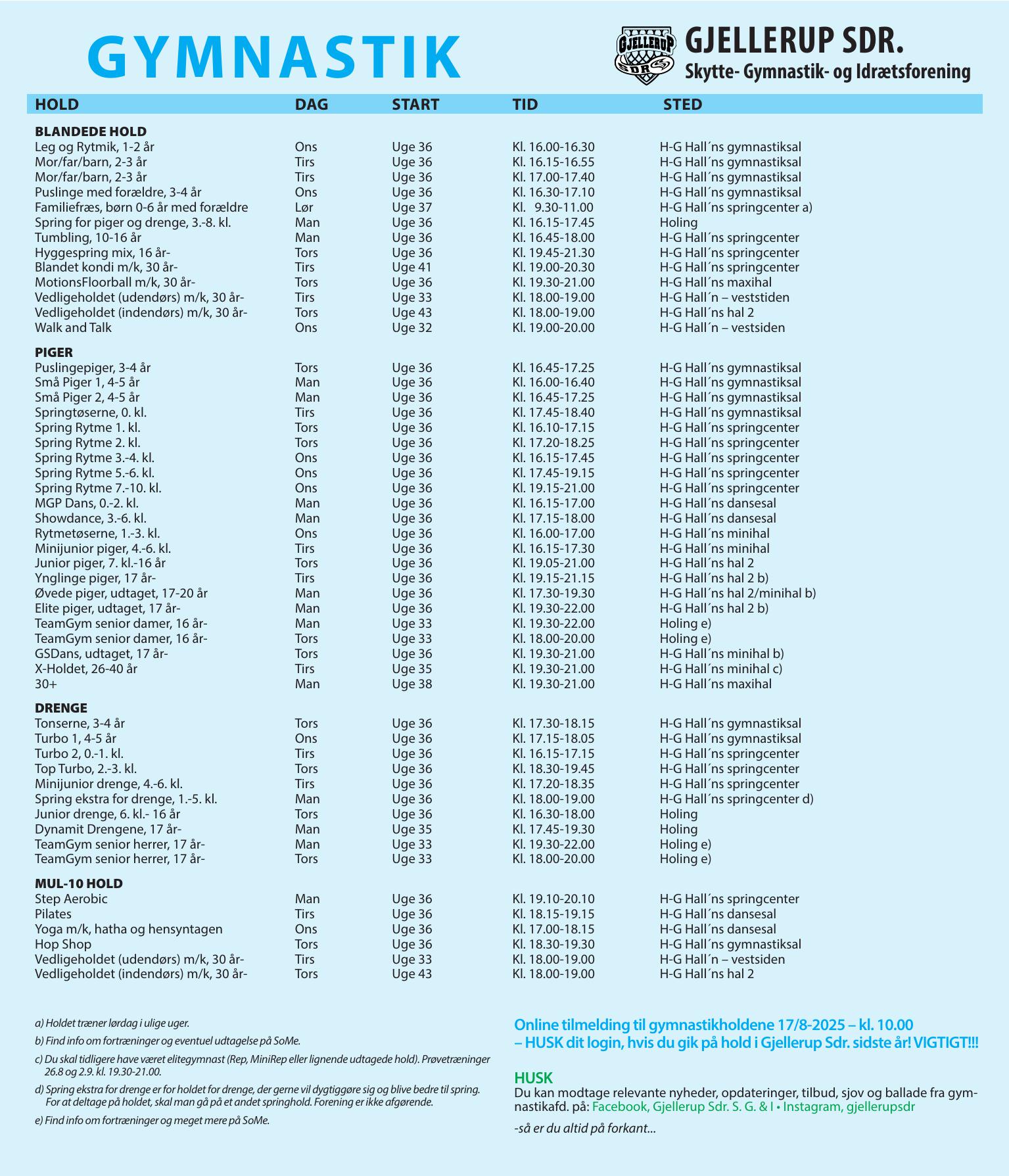 Gymnastik oversigt 2025/26